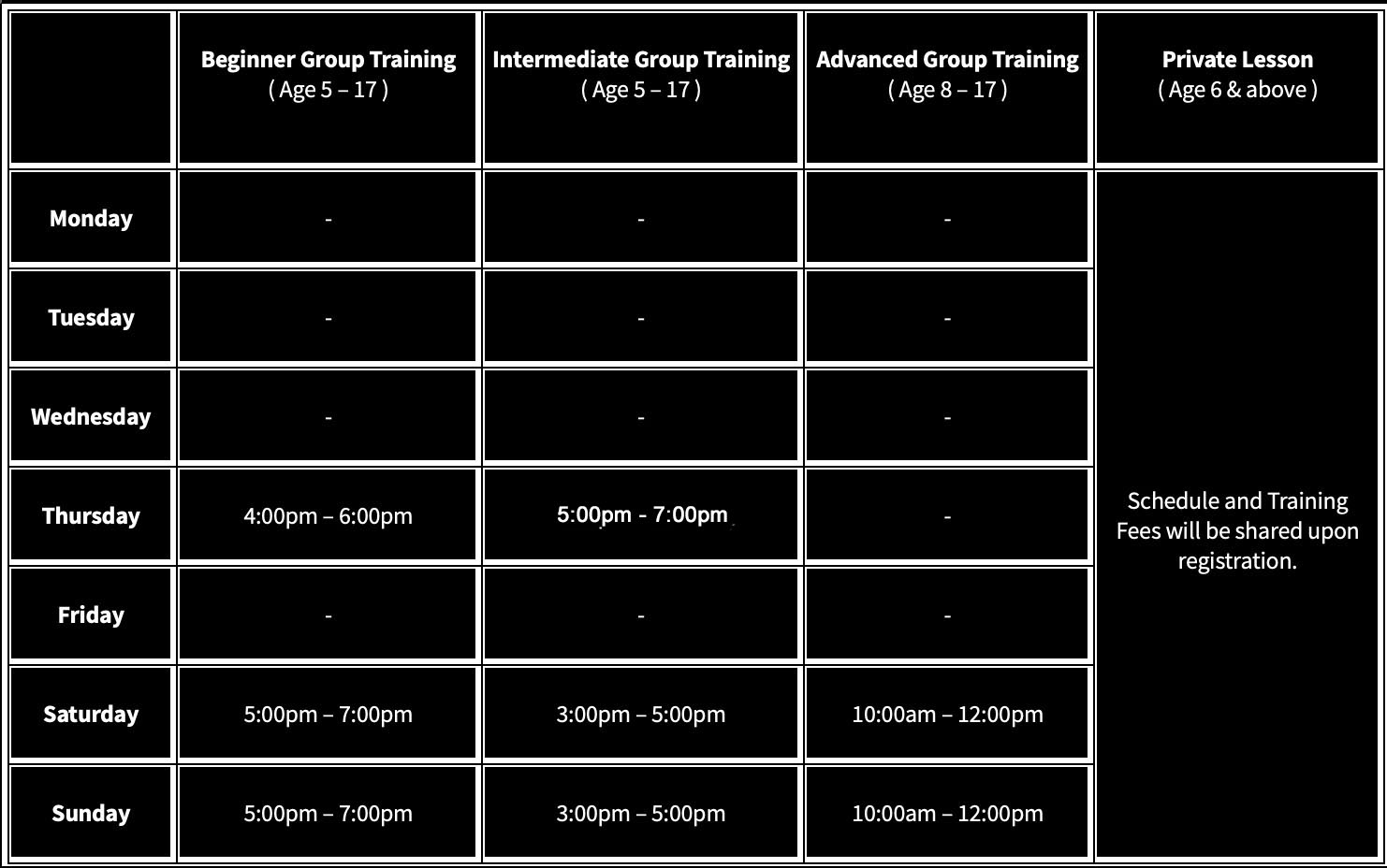 - Replacement classes are subject to availability and will be rescheduled on a date designated by the coaches from a selection of available options.